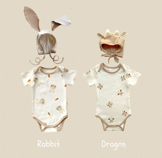 【韓國製🇰🇷】Organic Newborn Short Sleeve Bodysuit + Bonnet Set 有機棉初生嬰兒短袖包屁衣連帽套裝