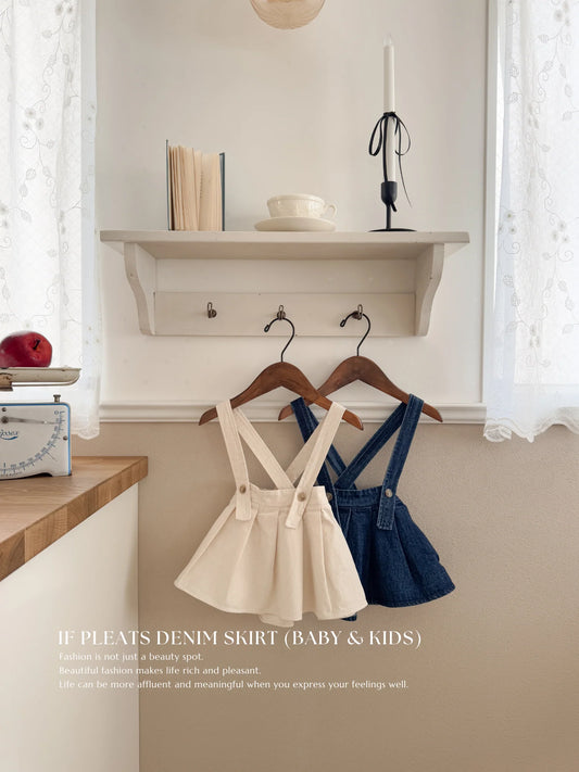 If Pleats Skirt | 牛仔百摺吊帶裙